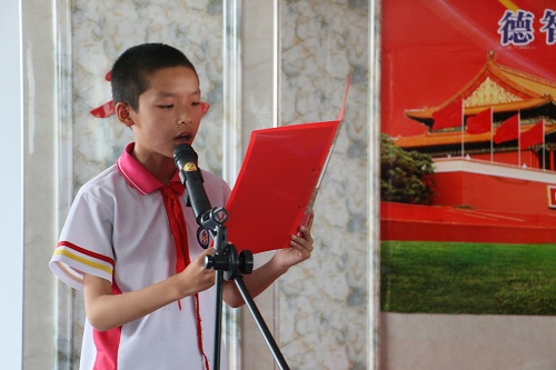 然后,负责两校联系的王老师宣读了获奖同学的名单,获奖的孩子们眼神里饱含激动,他们是第一届牧心奖学基金的获得者,他们满载着学校老师和志愿者们的希冀。接下来,学生代表五年级二班的谢磊作为奖学金获得者的代表上台发言,表达对老师和同学们深刻诚挚的感谢。
