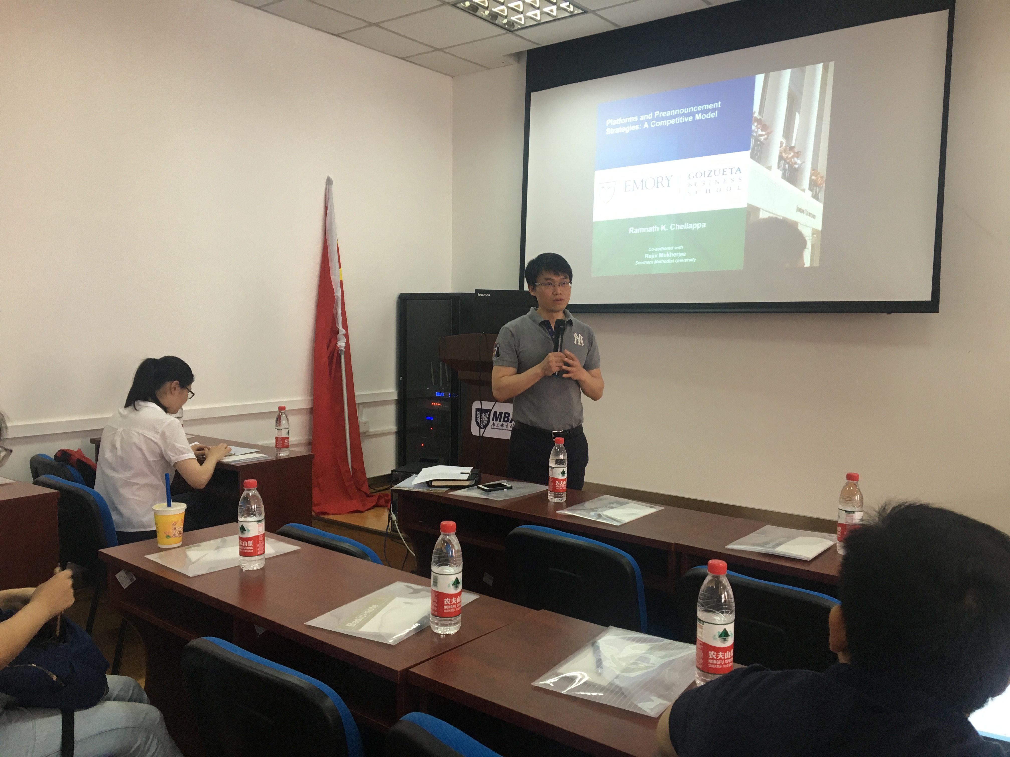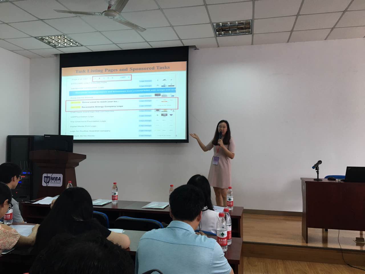 南洋理工大学信息技术与运营管理系(ITOM)助理教授莫佳卉老师作了题为“Exploring the Effects of Sponsoring Tasks in Crowd sourcing Contests”的报告,莫佳卉博士主要就竞争环境下广告赞助参与水平的有效性进行了研究讨论,其研究成果填补了关于广告赞助在竞赛环境中的作用的研究空白。