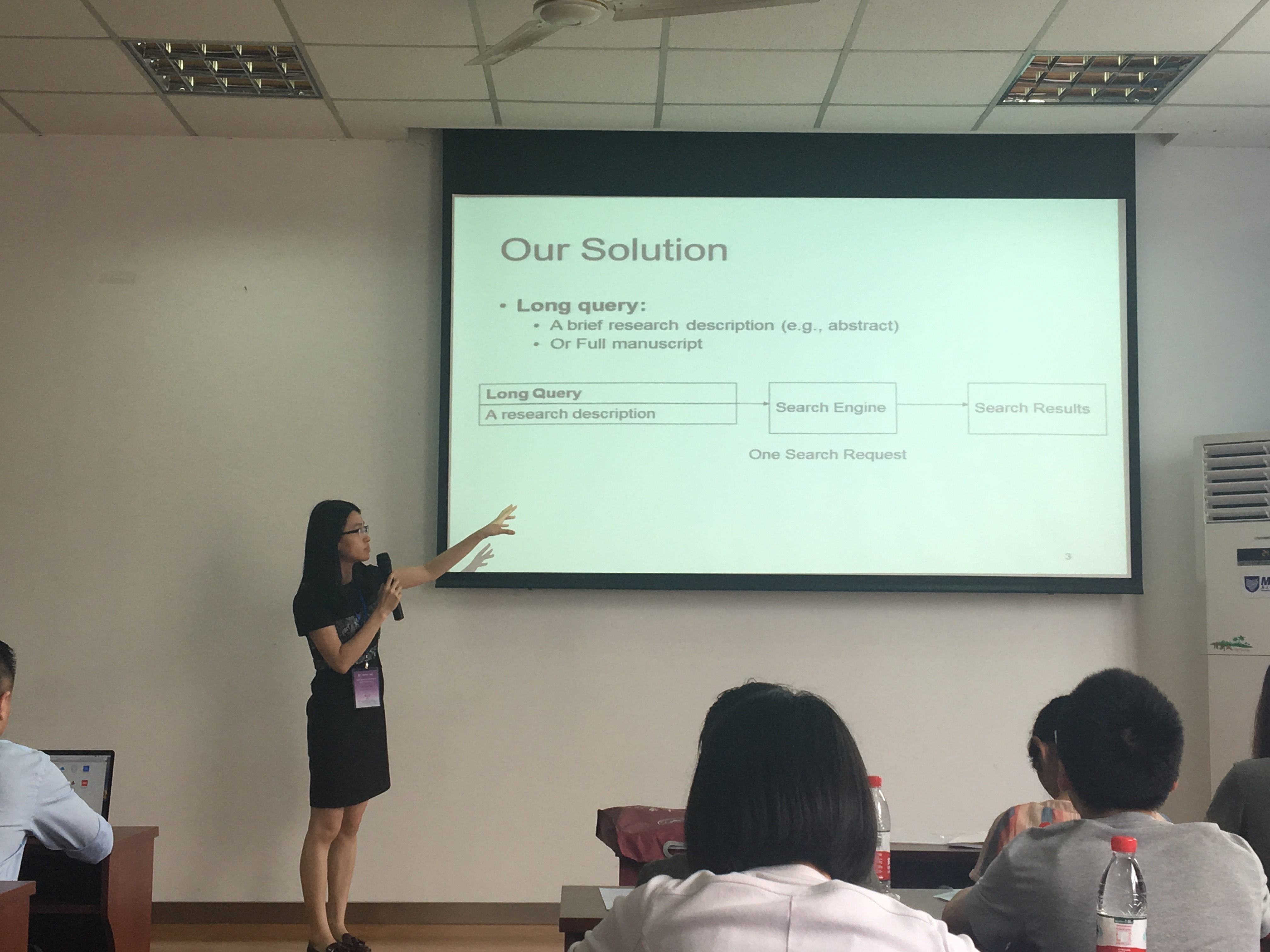 香港城市大学商学院研究生徐睿沄作了题为“Abstract-based Literature Search for Information Systems Researchers”的报告,通篇文章是在研究一种快速、全面的信息系统研究人员的文献检索工具,文献检索工具不仅实现了快速、全面的文章搜索,还可以帮助会议和期刊编辑为提交的稿件选择潜在的审阅者,并可以通过构造文章摘要和引文关系的数据, 可以很容易地扩展到其他领域。