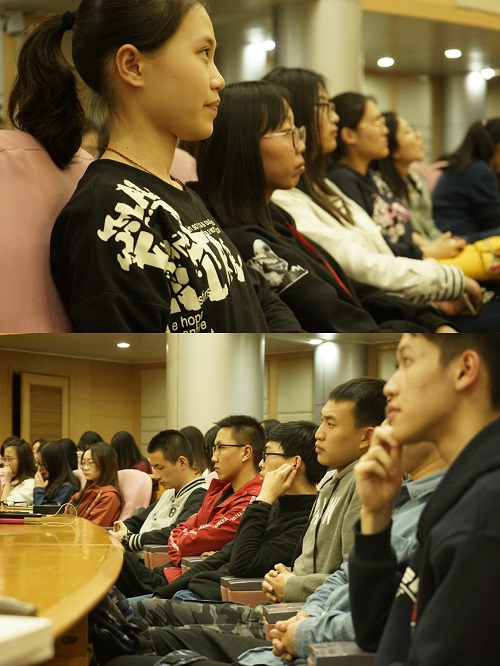 南京似乎略过了春日慢慢回暖的过渡期,一晃眼,就走进了激情昂扬的四月。经历了一个月的学习生活,yl6776永利集团官网的柚子们已逐渐展现出热忱,全身心地投入了学习。瞻前路方能思远道,为了让2016级的同学们对三个学期来的学习情况有清晰的认识,并明确未来奋斗的目标,2018年3月28日,闾越老师在科技会堂二楼组织了一次年级大会,并邀请了四位学有成效的同学们为大家分享心得。