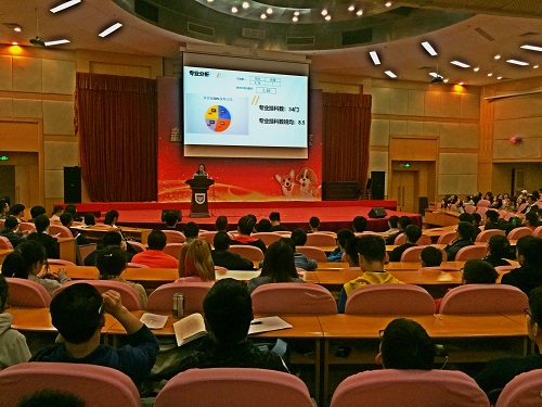 陈老师向同学们介绍了新学期相关的时间安排,并提出2017级考研升学率要达到百分之三十以上的目标。为了进一步让同学们适应新学期,做好规划,陈老师分析了学生学习的现状,指出许多同学思想懈怠,很容易被玩的思想打败。为了激励同学们努力学习,陈老师为同学们提出了建议。希望大家新学期树立一个正确的目标,凡事预则立,一个适当的贴合实际的目标能够指引前进的道路。陈老师以自身为例子,激励大家昂扬向上,给大家展示了关于计算机语言类工作的年薪,表示希望同学们在校期间能做好考研、出国的准备,或者学得一技之长,将来走出社会有更大的优势。大鹏老师向同学们详细介绍了计算机语言类的培训,并且告诉大家要敢想,敢做,不要自我否定,要努力寻找到自己感兴趣的地方并学会钻研,要把人生目标分层一步步去实现,不停的向前。