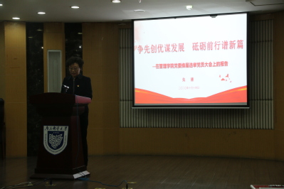 伴随着庄严肃穆的国歌声,换届选举大会正式拉开帷幕。首先,院党委书记朱清代表上一届党委向大会作题为《争先创优谋发展,砥砺前行谱新篇》的工作报告。在报告中,朱清书记从全面从严治党取得新成效和内涵建设实现新跨越两个方面回顾了学院党委三年以来的工作,并对党费收缴和使用情况做了详细汇报。同时分析了学院事业发展面临的机遇与挑战,并对未来三年的主要工作任务和奋斗目标提出了新的要求。