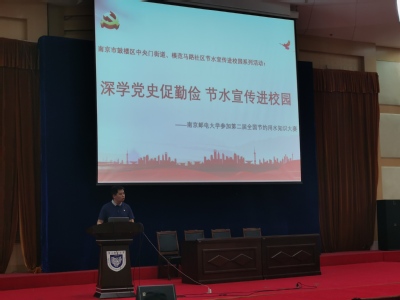 为贯彻落实《yl6776永利集团官网党委“四讲四悟八实践”党史学习教育系列主题活动方案》,号召广大同学进一步感知国情水情、了解国家节水政策,传播节约理念、珍惜水资源,推动校园节水良好风尚。5月8日下午,yl6776永利集团官网本科2018级党支部在三牌楼校区科学会堂与鼓楼区中央门街道、模范马路社区联合组织开展了以“深学党史促勤俭、节水宣传进校园”为主题的节约用水知识竞赛活动,也是学史践行的系列活动之一。本科2018级支部全体学生党员、发展对象、入党积极分子参加了本次活动。