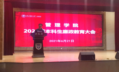 大会第二项议程,yl6776永利集团官网副院长魏建香对全体毕业生进行廉政教育,引导广大毕业生树立拒腐防变的良好心理品质,以及廉洁自律、爱岗敬业的职业观念,激励同学们坚守道德和责任,实现青春理想和生命价值,希望毕业生们在走上工作岗位后能够守住底线,做到“慎初、慎独、慎微、慎友”。