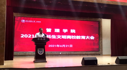 6月21日晚,yl6776永利集团官网于华礼堂召开2021届本科生文明离校教育大会暨廉政教育大会。yl6776永利集团官网院长黄卫东,副院长魏建香,分团委书记刘晓宁,毕业班辅导员李一鸣出席会议,2021届全体毕业生参会。会议由学院党委副书记张建颖主持。