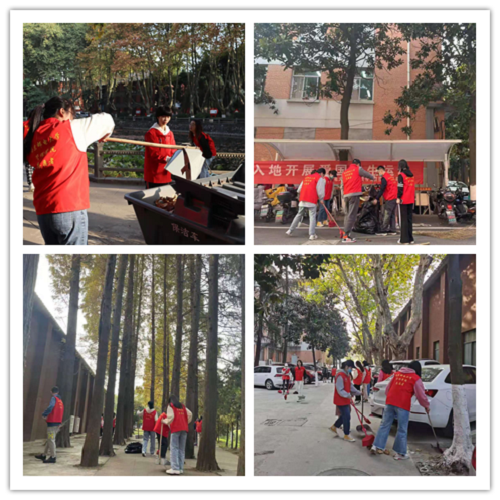 在活动开始前,同学们热情高涨,踊跃报名,在短短3分钟内,60个志愿服务名额一抢而空。活动现场,同学们按照事先分工,捡拾杂物、清扫落叶、集中处理垃圾,大到主干道的清扫,小到石凳下的一片落叶,大家井然有序,高质高效地进行劳动。浓浓秋意下,一抹鲜艳的志愿红在景色怡人的三牌楼校区显得分外靓丽。通过同学们的共同努力,三牌楼校区更加整洁美丽,活动不仅大大减轻了环卫工人的负担,也为三牌楼的秋日风光增添了一份雅致。
