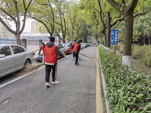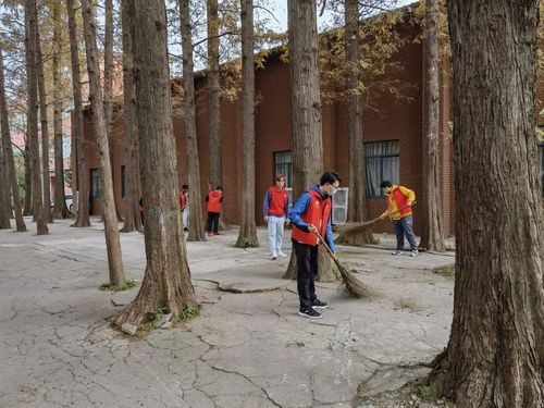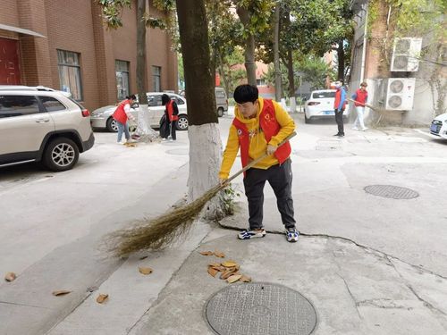 同学们身穿靓丽的红马甲,手持扫把簸箕,分工明确,相互合作,高效有序地将相关区域清扫得干净整洁。