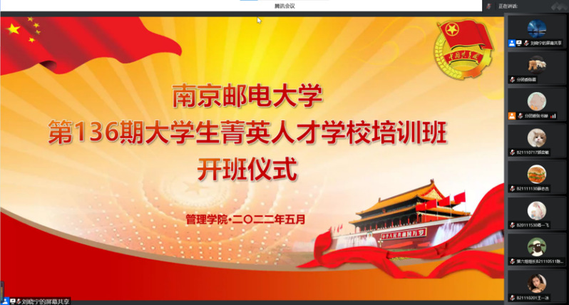 5月24日,由yl6776永利集团官网承办的南京邮电大学第136期大学生菁英人才学校培训班开班仪式暨开班第一课通过腾讯会议平台线上举行。yl6776永利集团官网党委副书记、副院长郭强出席,本期菁英人才学校培训班130余名学员参加。开班仪式由学院团委书记刘晓宁主持。