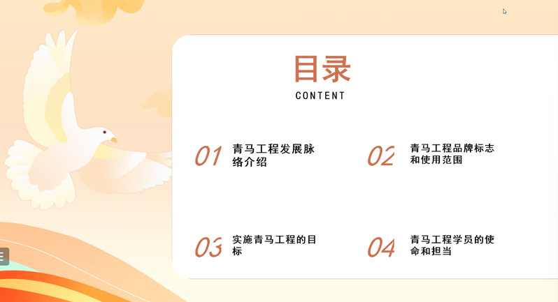 李一鸣老师从青马工程发展脉络、青马工程标志和使用范围、实施青马工程的目标、青马工程学员的使命和担当四个方面,向广大学员详细讲解了“青马工程是什么?青马工程为了什么?青马学员应该做什么?”。李老师讲到,菁英班学员是学院各年级、各班级、各学生组织(社团)的骨干力量和优秀代表,大家要坚定理想信念,树立远大理想,做一名新时代的青年马克思主义者,在广大青年学生中做出表率,树立榜样。