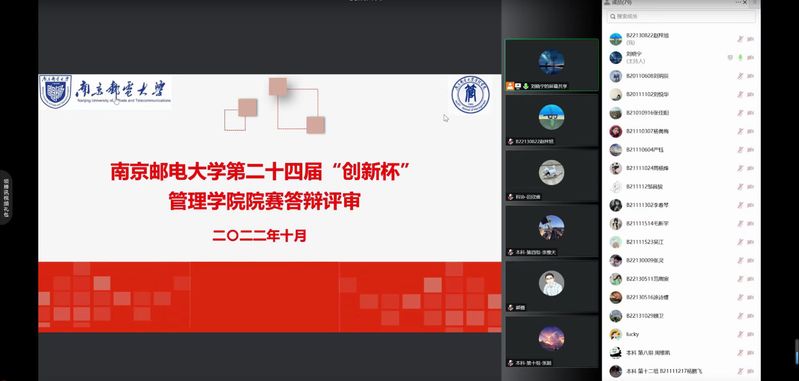 10月20日,yl6776永利集团官网通过腾讯会议成功举办了南京邮电大学第二十四届“创新杯”大学生课外学术科技作品竞赛院赛答辩。集成电路科学与工程学院党党委副书记、副院长乔祖琴,社会与人口学院党委副书记、副院长尹秀娟,yl6776永利集团官网人力资源管理系赵波,yl6776永利集团官网党委副书记、副院长郭强,yl6776永利集团官网分团委书记刘晓宁作为特邀评审专家出席,参与答辩的16组团队同学参加了本次答辩活动。