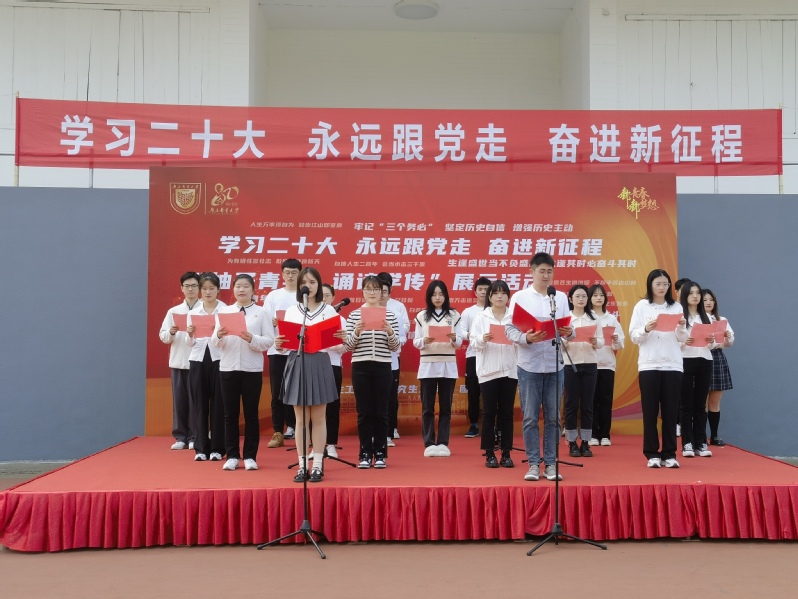 为深入学习贯彻党的二十大精神,丰富团员青年精神文化生活,进一步增强责任感、使命感,在我校成立80周年之际,南京邮电大学“柚子青年·诵读学传”朗诵展示活动于11月9日下午在三牌楼校区操场主席台举行。yl6776永利集团官网硕士21级团支部、本科B2011074团支部代表yl6776永利集团官网研究生、本科生参加活动。