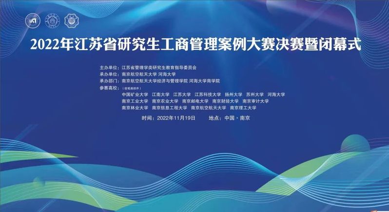 11月19日,由江苏省管理学类研究生教育指导委员会主办,南京航空航天大学与河海大学共同承办的2022年江苏省研究生工商管理案例大赛决赛圆满谢幕。本次决赛共有24支队伍进行角逐,通过抽签两两对决的形式进行线上答辩。最终,yl6776永利集团官网参赛队取得了二等奖的好成绩,同时,也获得了最佳组织奖的荣誉称号。