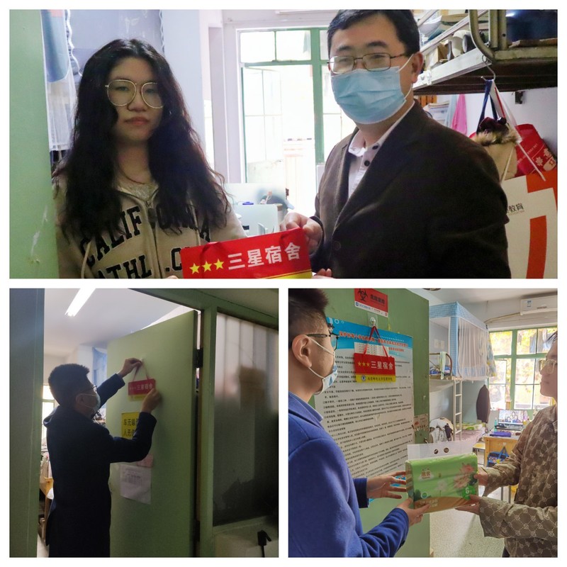 11月17日-18日,由各辅导员带队、学生代表参与的评比小组根据学校迎校庆学生宿舍卫生大扫除检查标准和yl6776永利集团官网学生星级宿舍评比实施办法对全体学生宿舍进行集中检查评比,在提醒各学生宿舍做好冬季宿舍卫生整理、文明生活的同时,还开展安全检查教育工作,提醒各学生宿舍要严格遵守学校关于违章电器的有关规定,坚决杜绝违章电器在冬季易发、多发的情况。11月23日,学院党委副书记、副院长郭强带领有关辅导员前往三星宿舍挂牌、发放奖品并查看宿舍情况,他向连续获评三星宿舍的宿舍成员表示充分肯定、对于新获评三星宿舍的宿舍成员表示鼓励,希望全体三星宿舍能够珍惜荣誉,带动更多同学将宿舍营造成温馨的学习、生活环境。