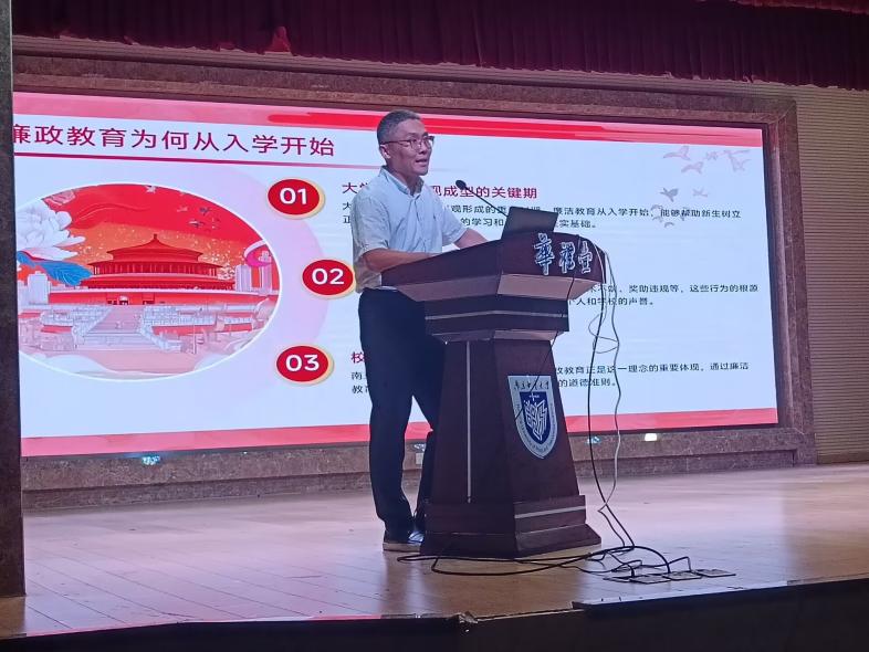 廉洁教育环节,学院副院长张冲教授围绕聚焦“廉洁诚信”,结合高校典型案例解读考试作弊的认定标准与处罚措施,强调“作弊不仅会影响学业,更会留下诚信污点”。同时,他倡导新生树立正确价值观,在日常中坚守底线,将廉洁诚信融入言行,筑牢未来发展的思想根基。