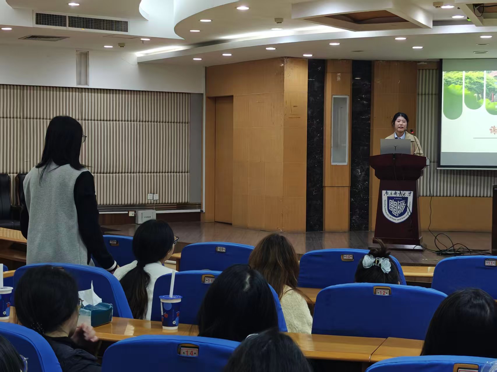 在互动提问环节,与会同学踊跃发言,就自身困惑与具体细节进行提问。王雨菲同学结合政策与个人体会,给予了耐心细致的解答。现场交流充分,反响热烈。